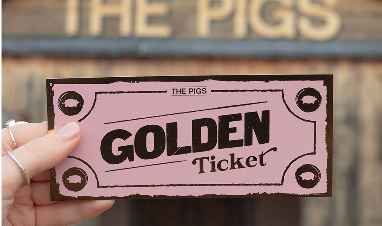 Golden Tickets are back for 2025, and this year, we’ve got 10,000 piggy prizes ready for you to win. Spend over £25 when dining at The Pigs between November and December 2025, and you’ll receive your Golden Ticket. Then, between January and March 2026, spend over £10, and you’ll be able to swap your Golden Ticket for a Golden Scratchcard, on which your prize will be revealed.