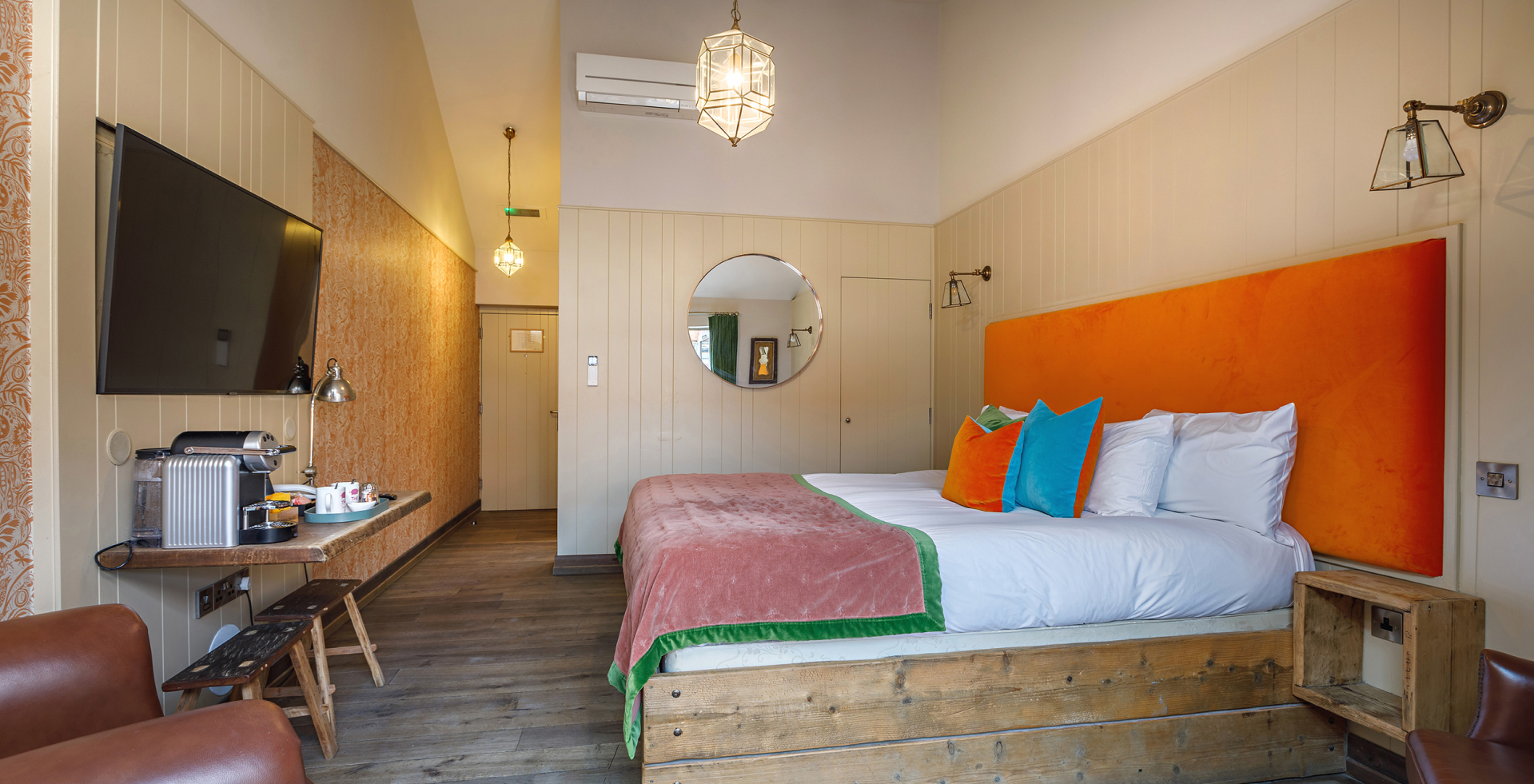 Imagine a romantic getaway to The Pigs in an Original Spa Room. These private spa rooms offer an intimate, relaxing experience. Picture yourself sinking into the best night's sleep on a cosy king vi-spring mattress with Egyptian cotton sheets. Walk through your room, past the in-room sauna and dual-bathing bathtub, to discover French doors leading to a private courtyard where you will find outside seating and a firepit, perfect for staying warm and roasting marshmallows under the stars. The next morning, enjoy a mouth-watering complimentary brunch, included with every night of your stay. Even better, a selection of these rooms are dog-friendly, so your furry friends are welcome to join you during your stay!